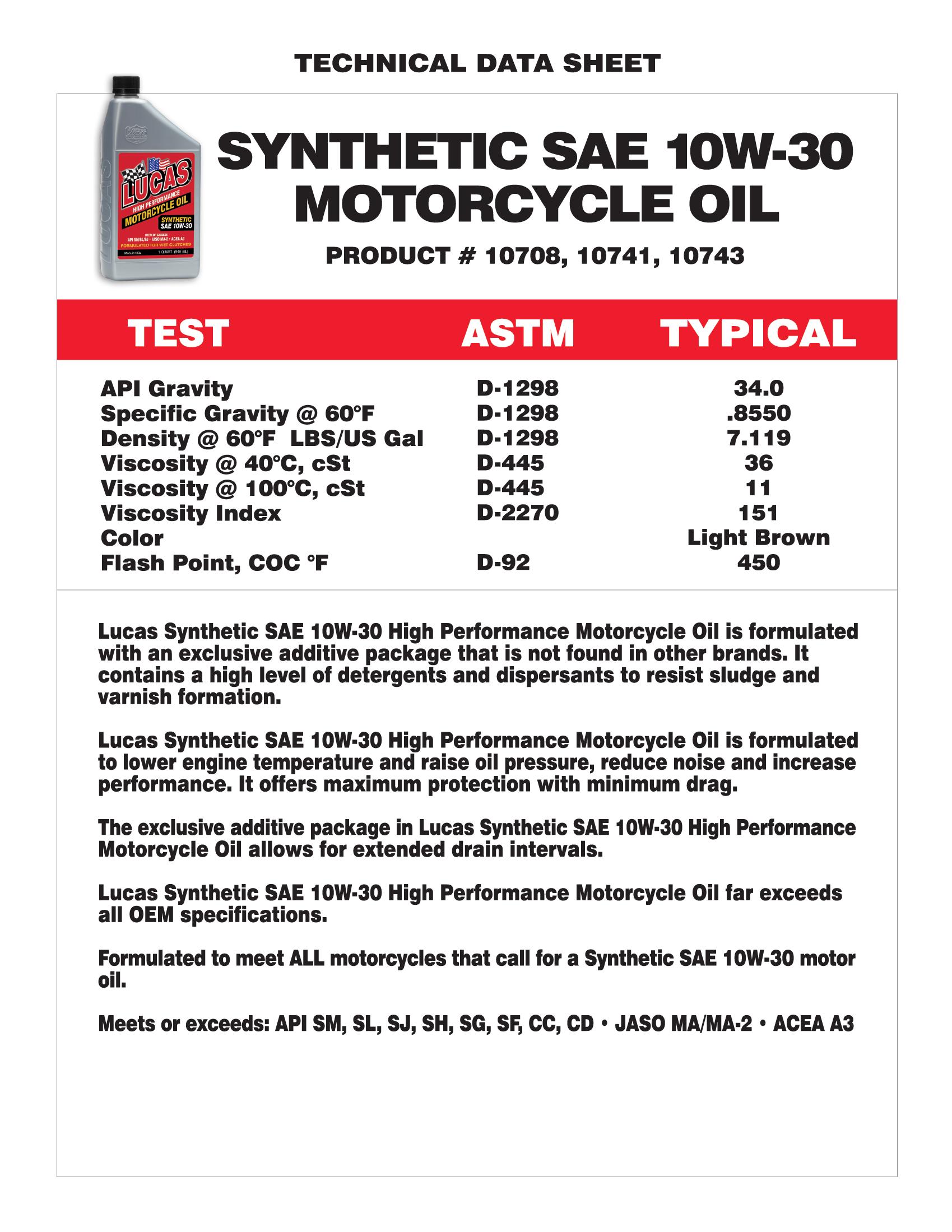 Lucas High Performance Motorcycle Oils are the result of technology gained through years of blending motor oils and gear oils for the racing industry.