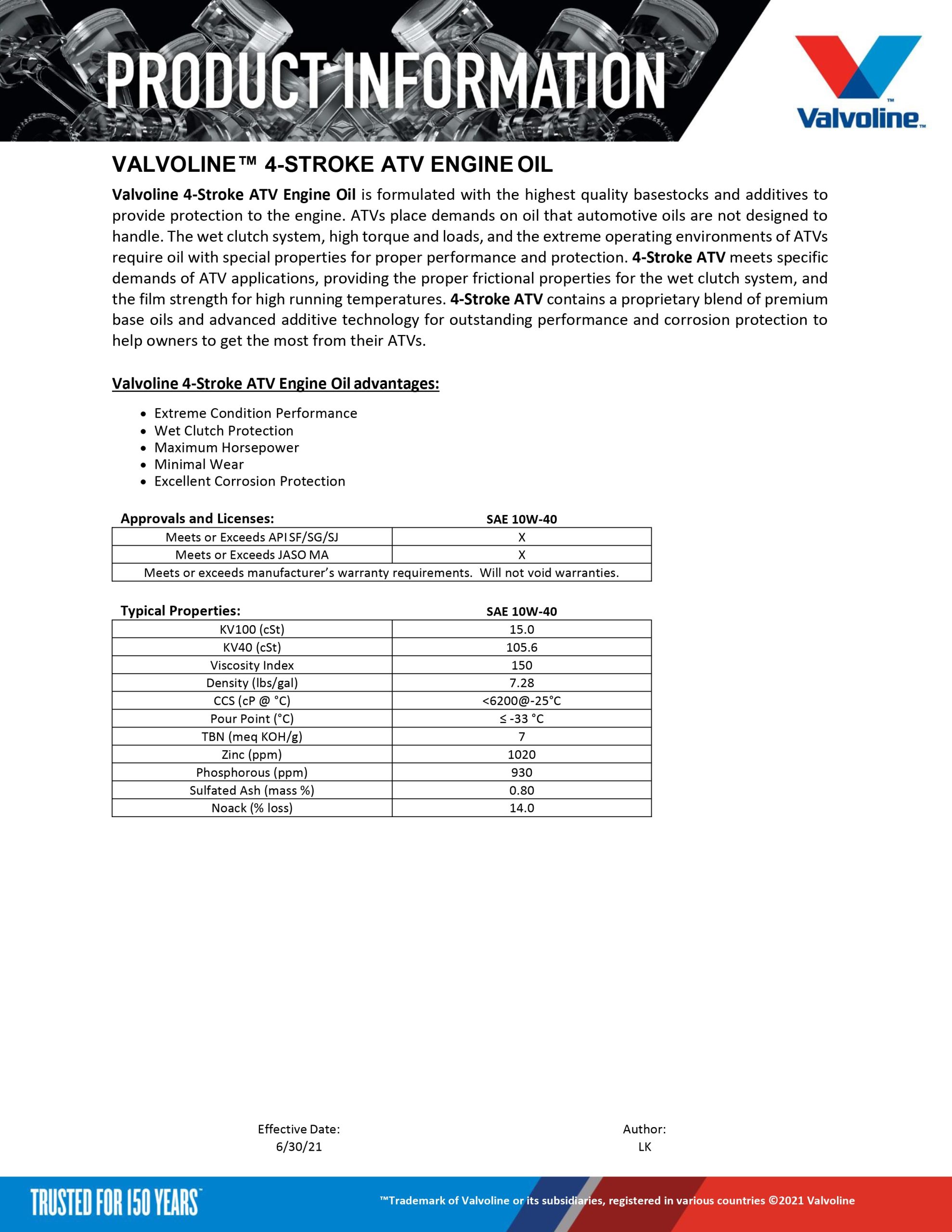 4-Stroke ATV contains a proprietary blend of premium base oils and advanced additive technology for outstanding performance and corrosion protection to help owners to get the most from their ATVs.