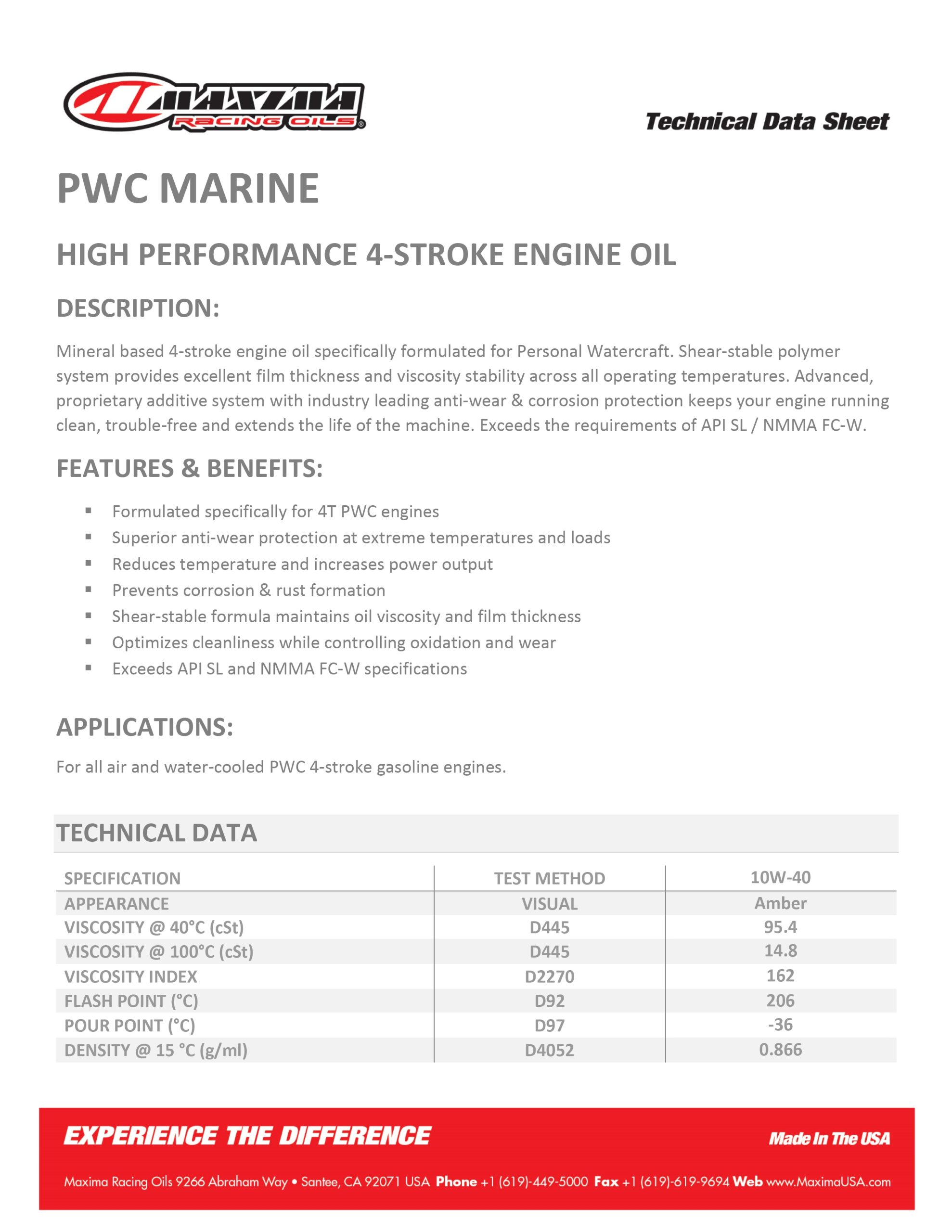 For all air and water-cooled PWC 4-stroke gasoline engines.