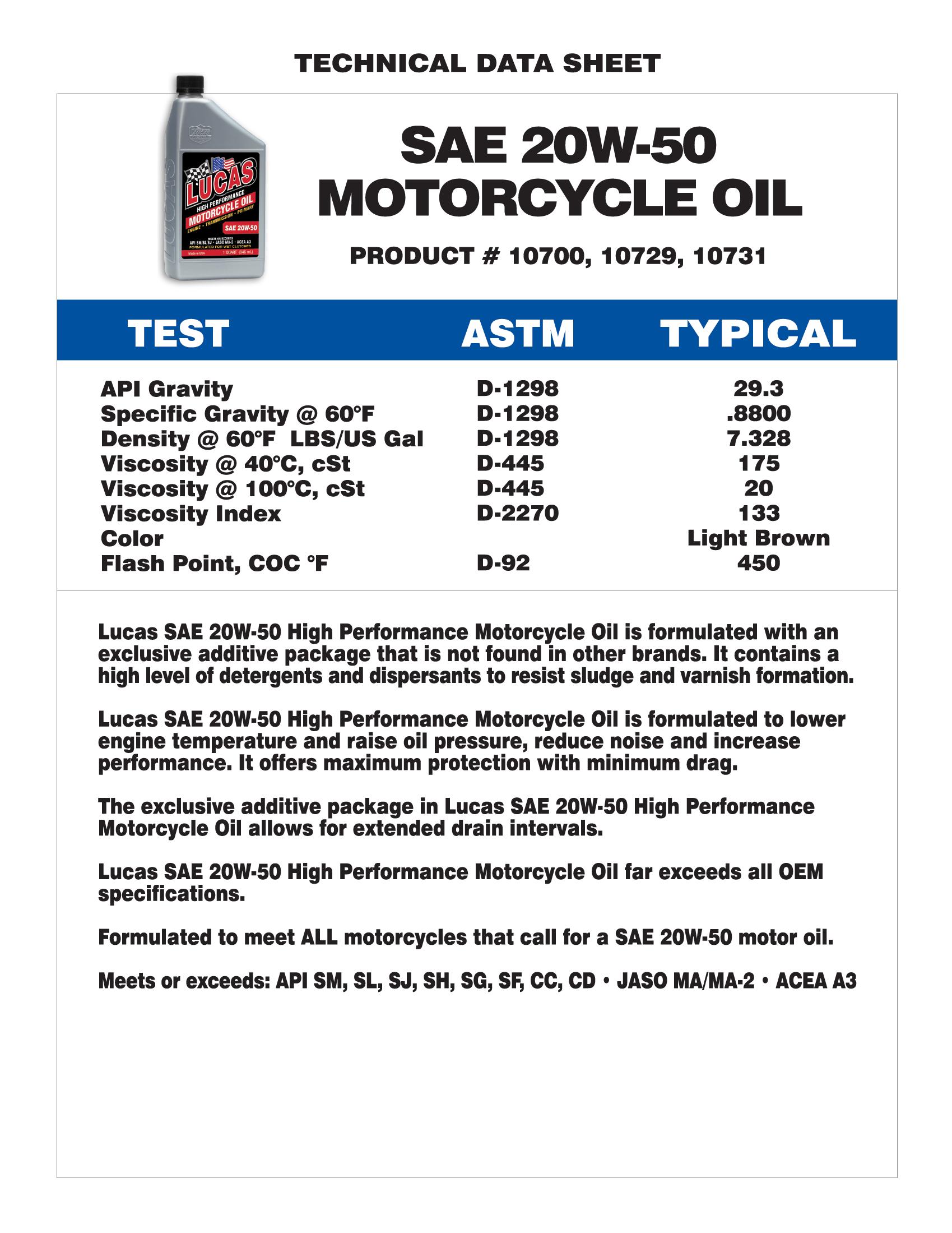 Lucas High Performance Motorcycle Oils are the result of technology gained through years of blending motor oils and gear oils for the racing industry.
