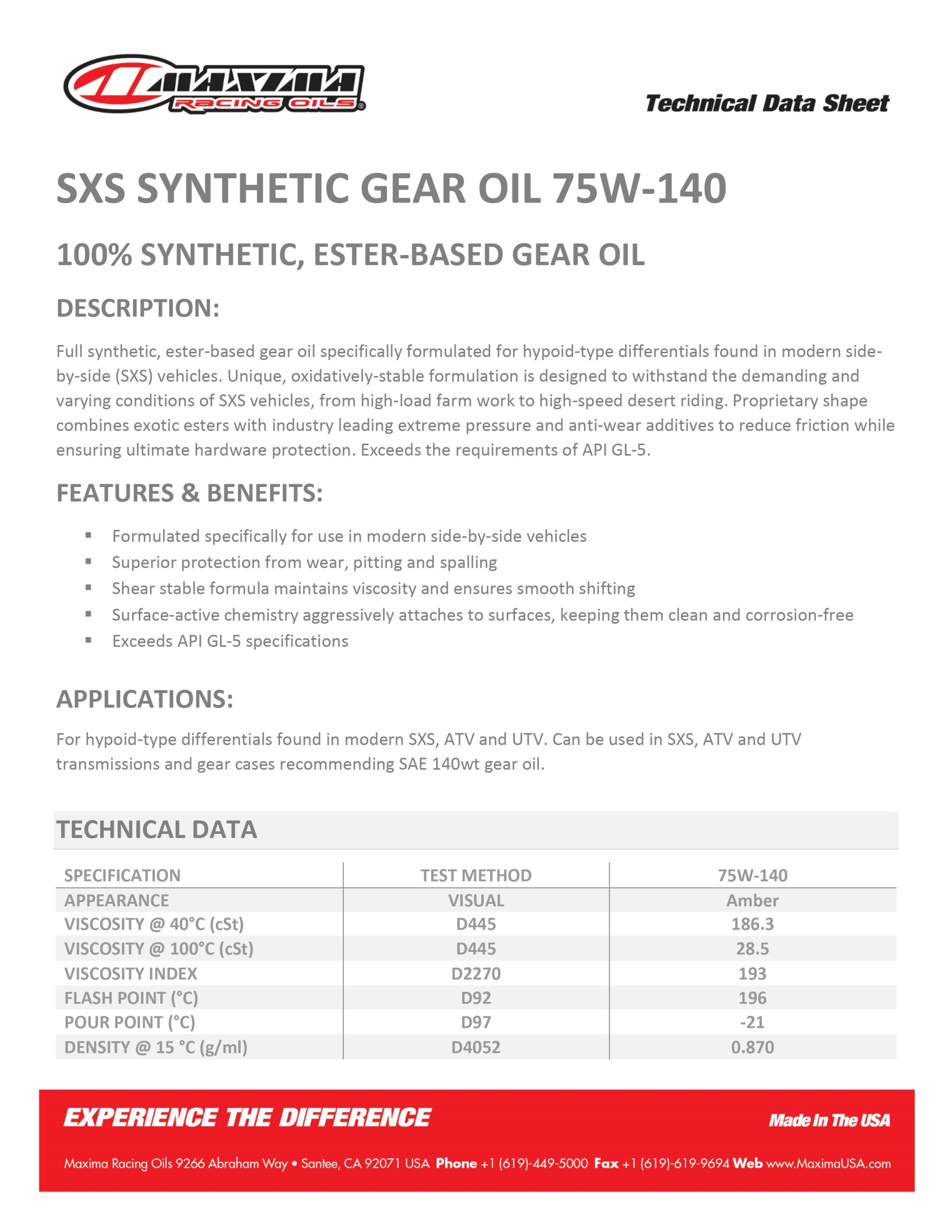 Full synthetic, ester-based gear oil specifically formulated for use in motorcycles and ATVs.