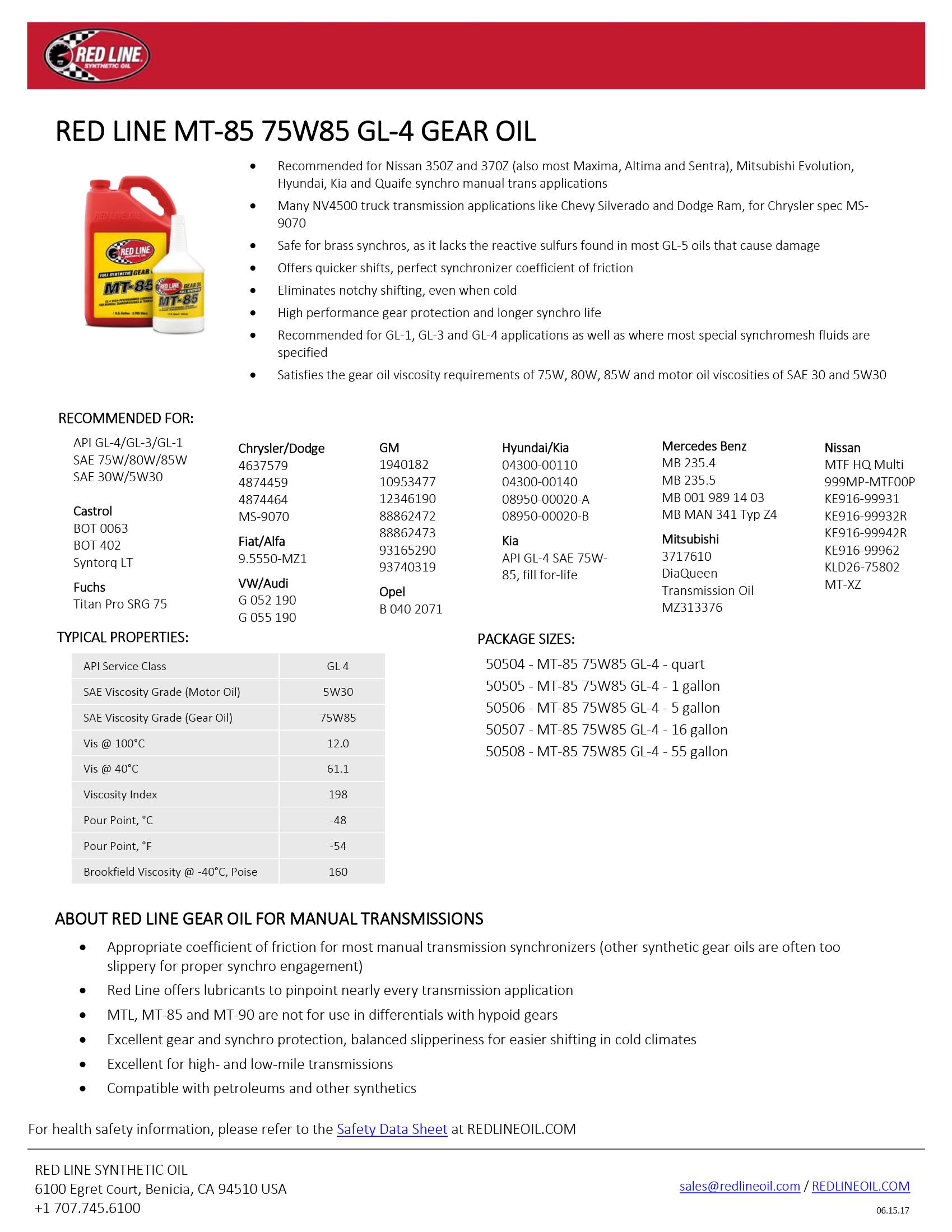 Recommended for Nissan 350Z and 370Z (also most Maxima, Altima & Sentra), Mitsubishi Evolution, Hyundai, and Kia applications. Many NV4500 truck transmission applications like Chevy Silverado and Dodge Ram, for Chrysler spec MS-9070