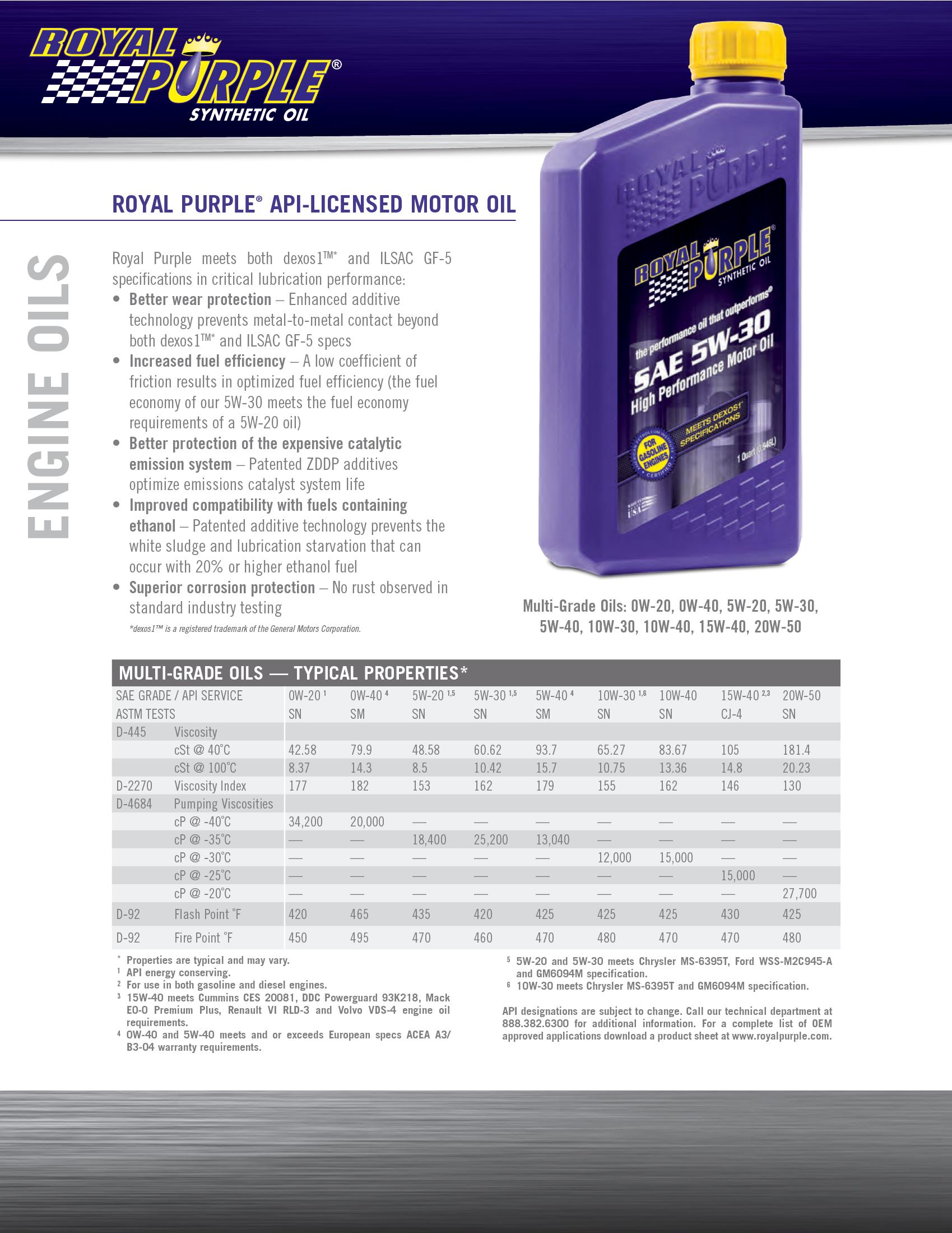 Royal Purple meets both dexos1 and ILSAC GF-5 specifications in critical lubrication performance: