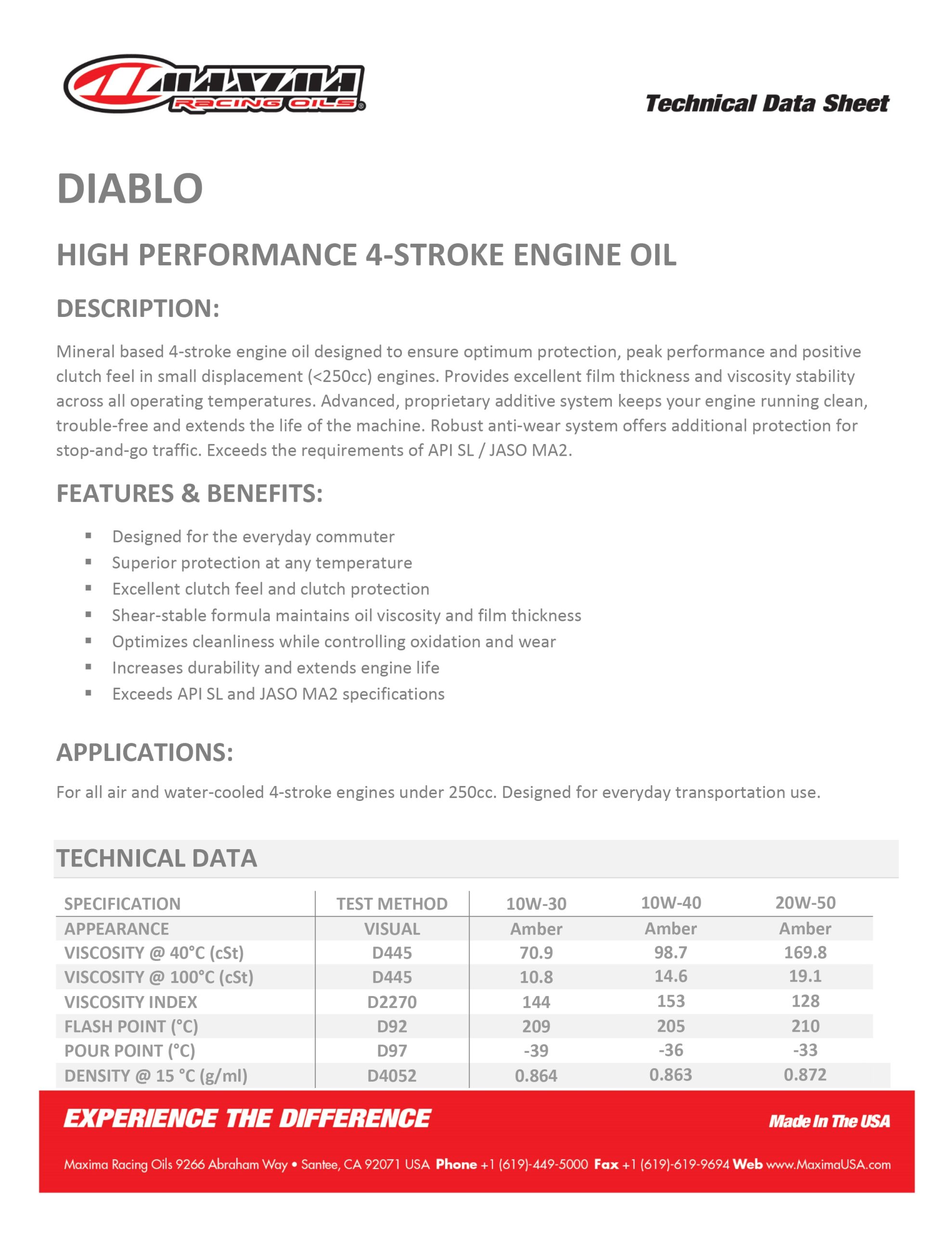 Mineral based 4-stroke engine oil designed to ensure optimum protection, peak performance and positive clutch feel in small displacement (<250cc) engines.