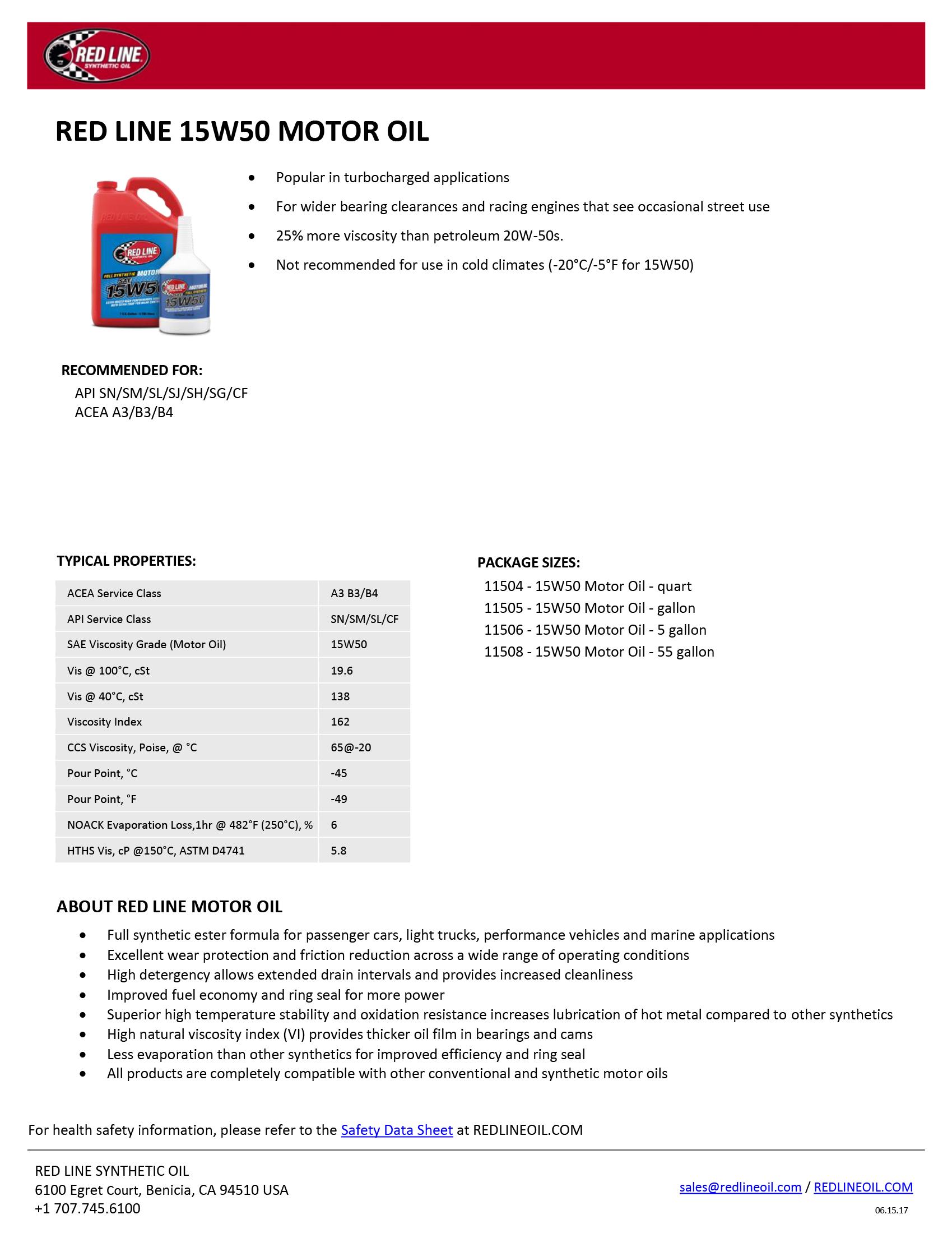 Not recommended for use in cold climates (-20C/-4°F for 15W-50)