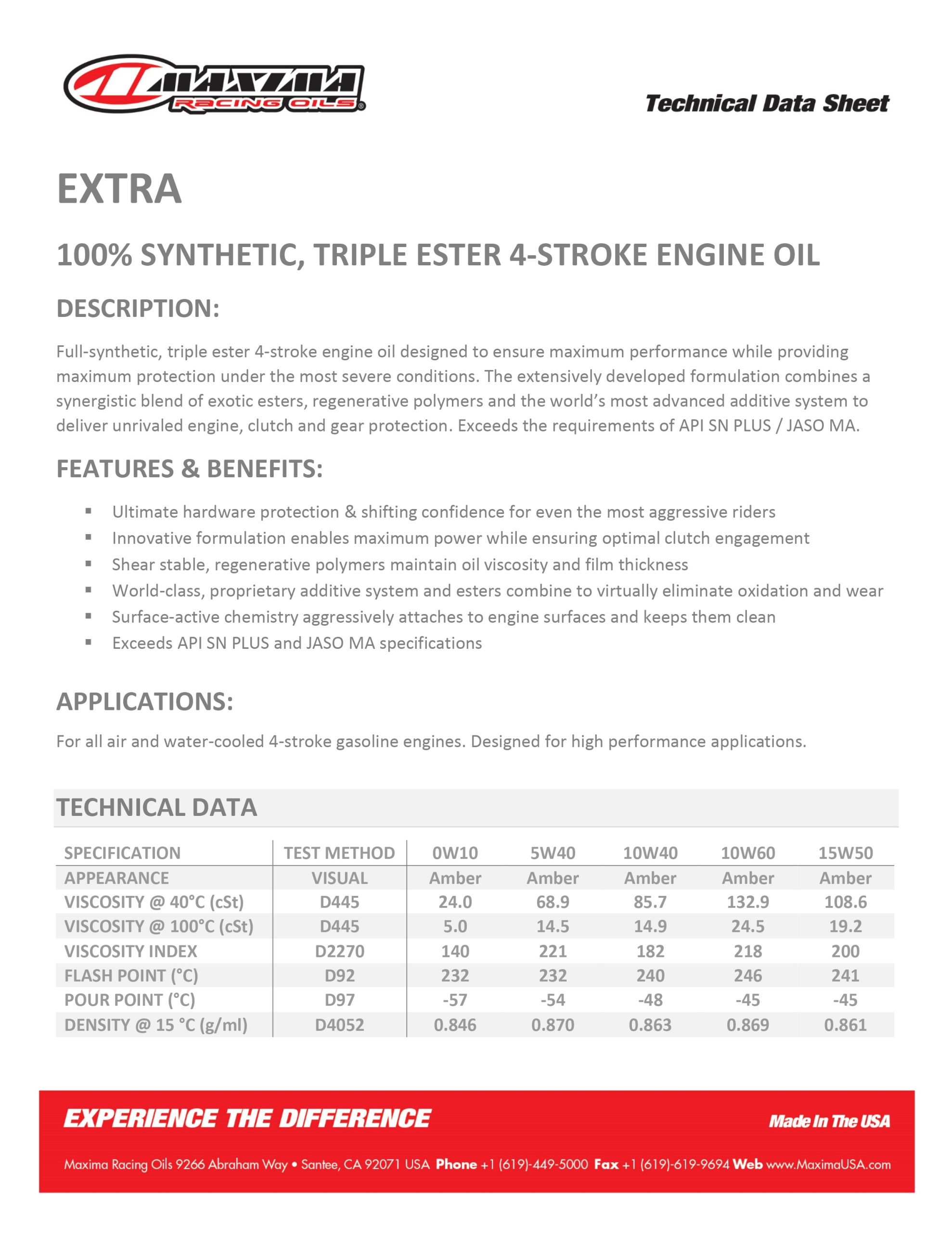 Full-synthetic, triple ester 4-stroke engine oil designed to ensure maximum performance while providing maximum protection under the most severe conditions.