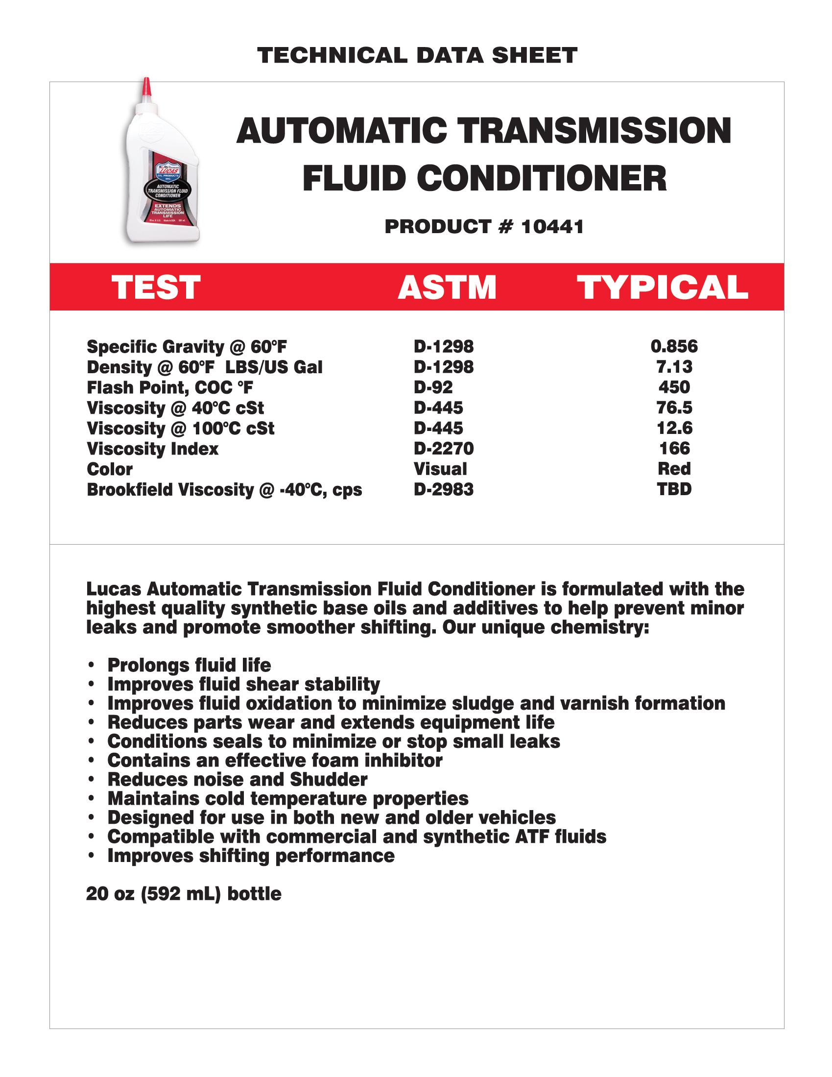 Lucas Automatic Transmission Fluid Conditioner is formulated with the finest base oils and special Lucas additive package,