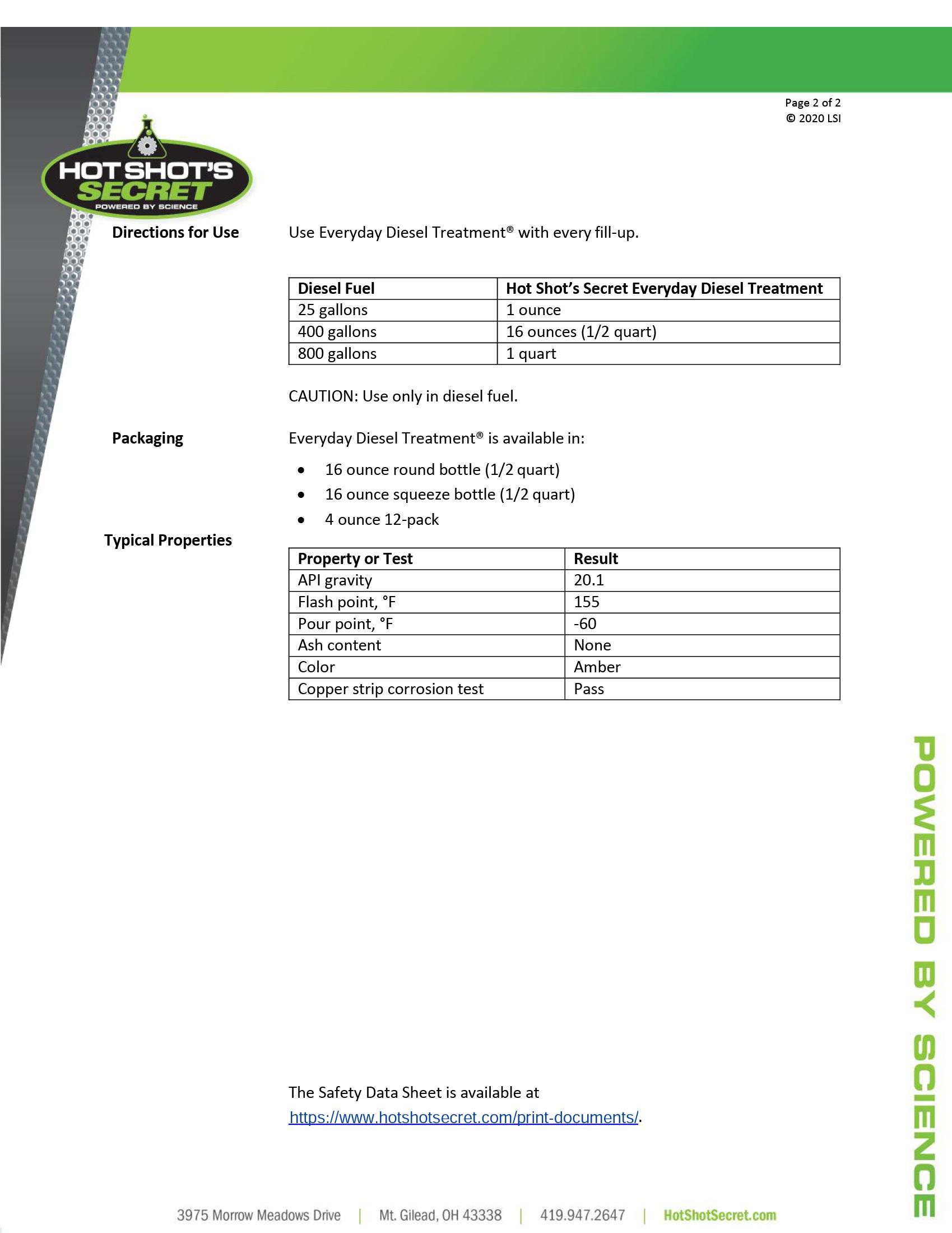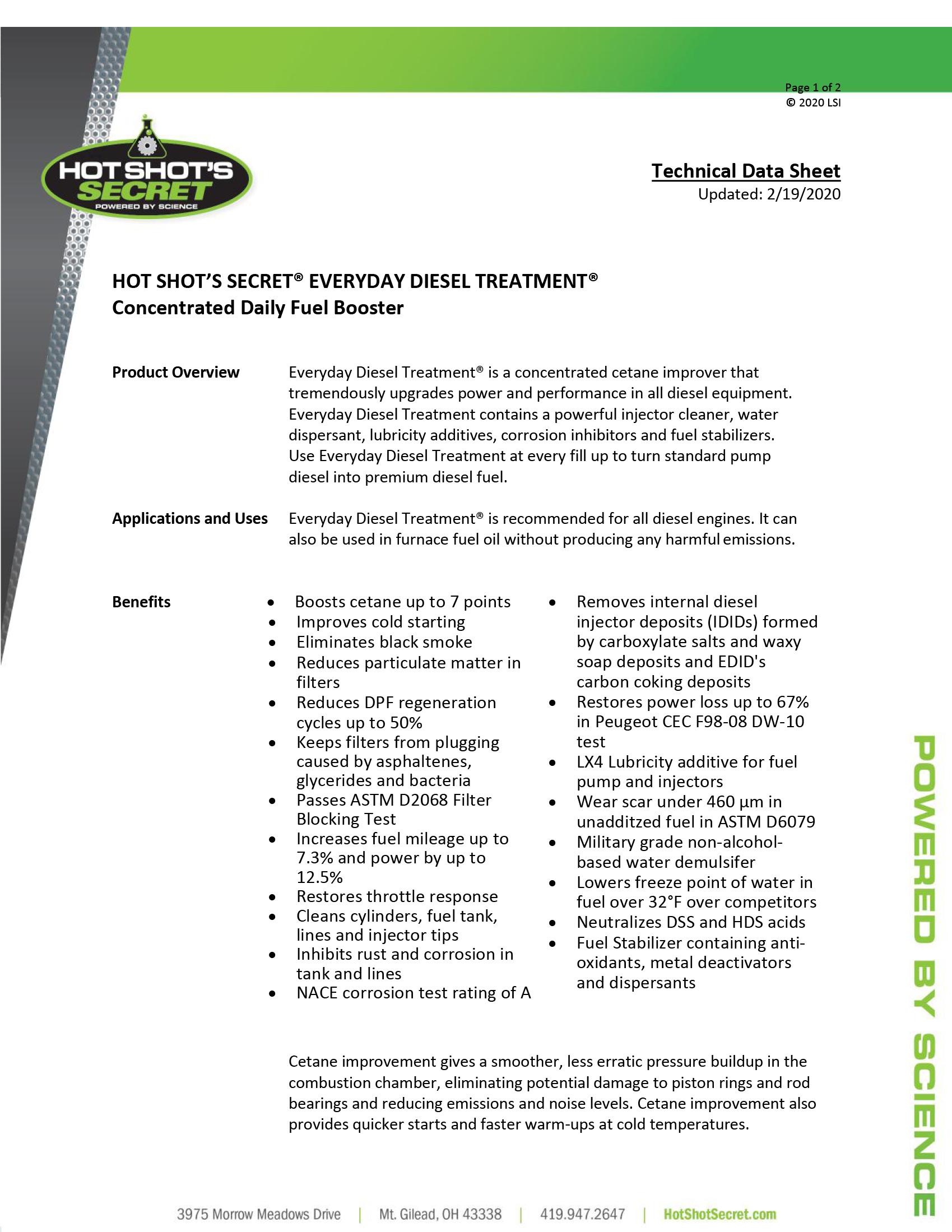 Everyday Diesel Treatment (EDT) is a concentrated 6-in-1 diesel additive formulated to resolve issues with todays Ultra-Low Sulfur Diesel (ULSD). It is engineered to improve fuel economy, power & performance, and overall protection of diesel fuel systems. It is recommended for all diesel engines.