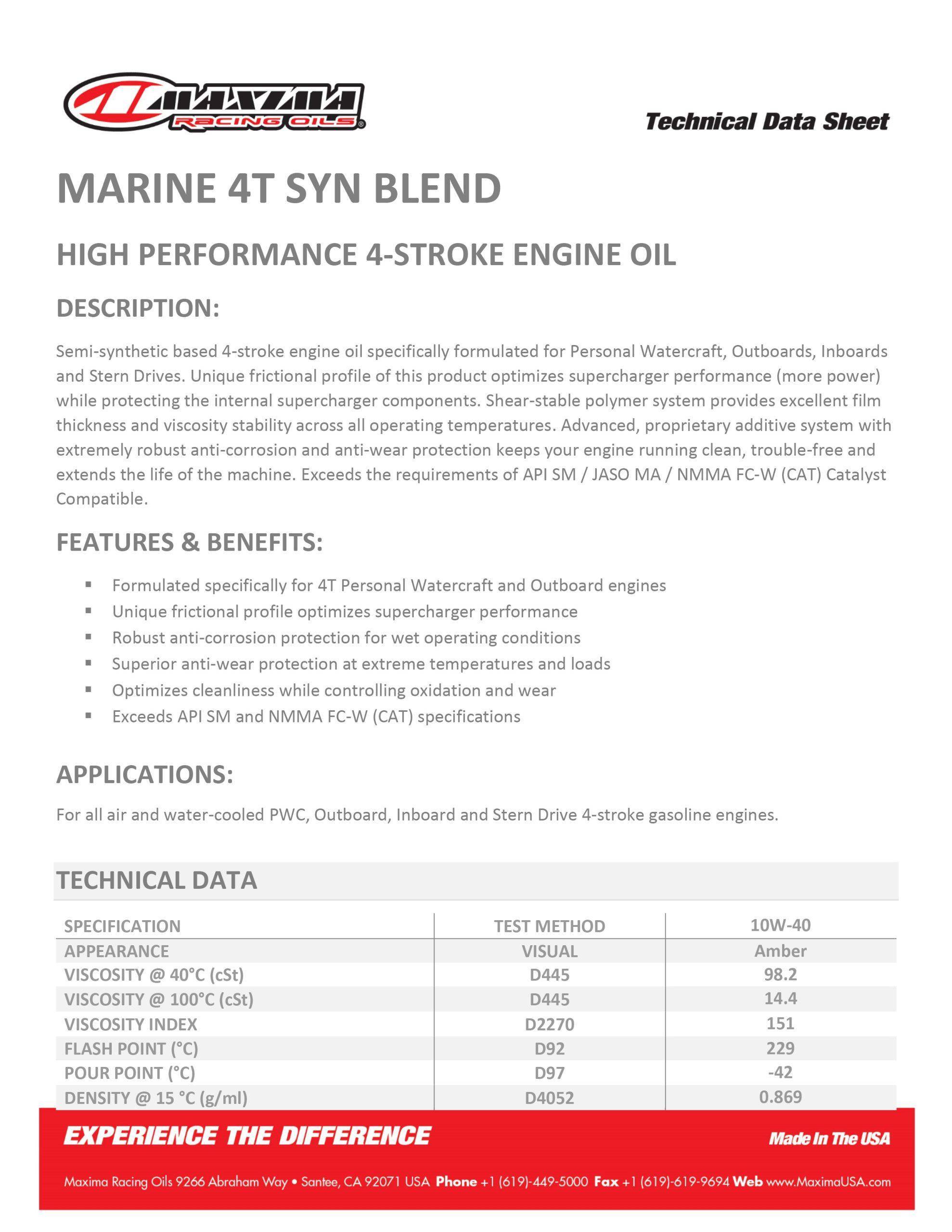 For all air and water-cooled PWC, Outboard, Inboard and Stern Drive 4-stroke gasoline engines.