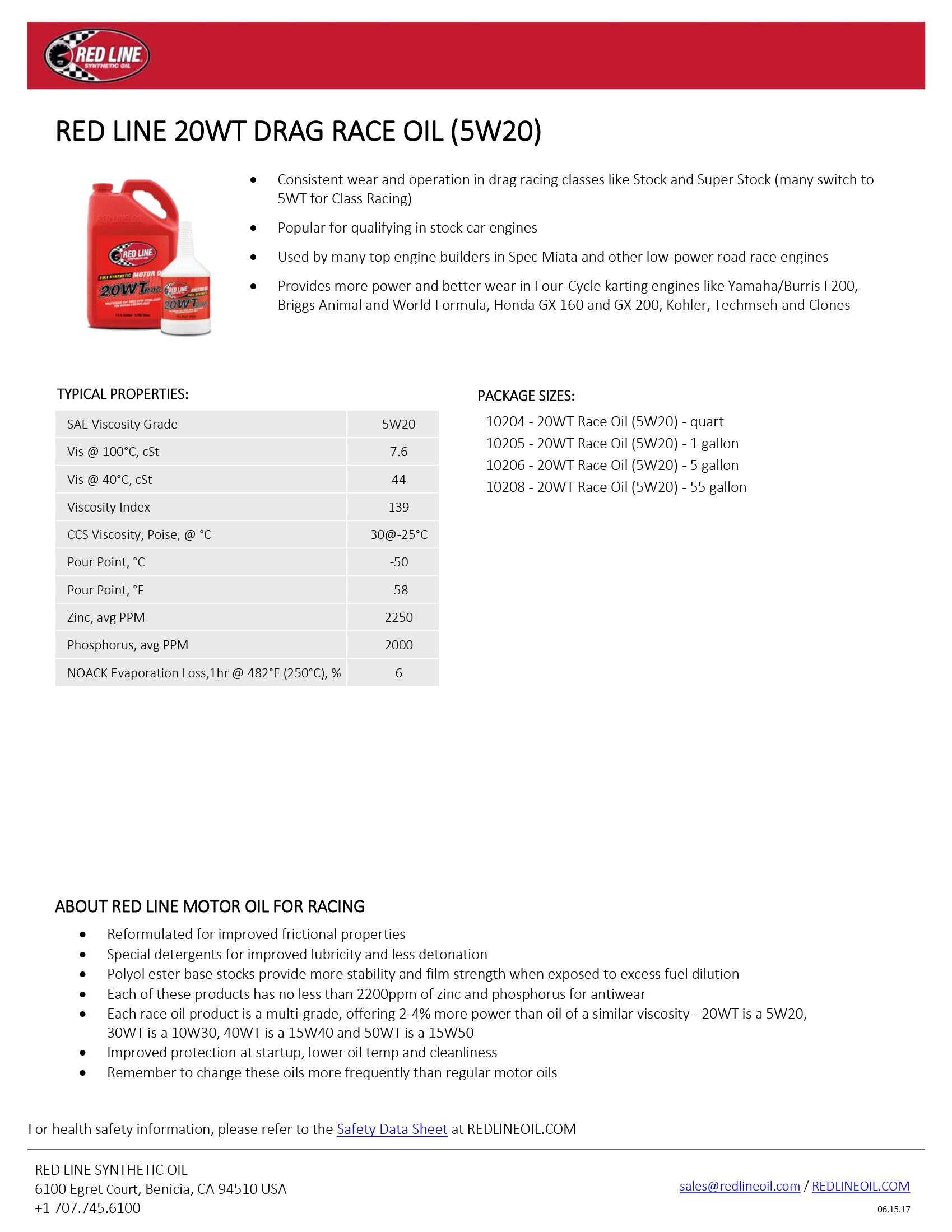 Consistent wear and operation in drag racing classes like Stock and Super Stock (many switch to 5WT for Class Racing). Popular for qualifying in stock car engines. Used by many top engine builders in Spec Miata and other low-power road race engines. Provides more power and better wear in Four-Cycle karting engines like Yamaha/Burris F200, Briggs Animal and World Formula, Honda GX 160 and GX 200, Kohler, Techmseh, and Clones.